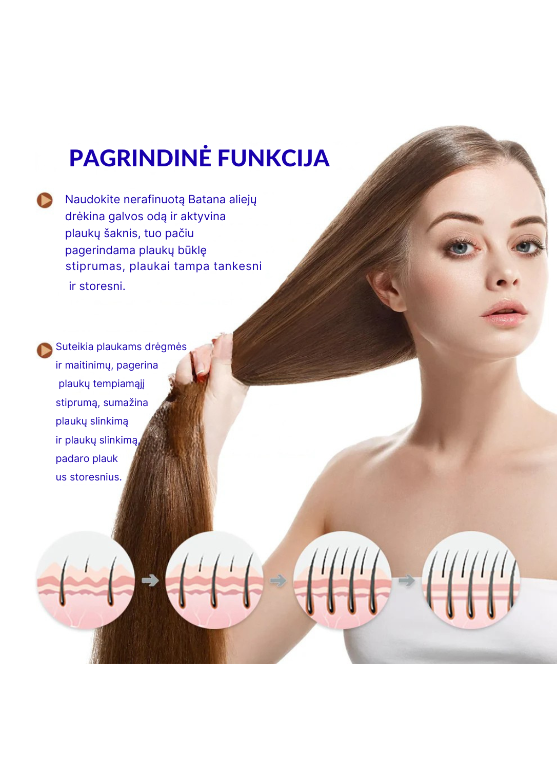 • Stiprina plaukų šaknis ir skatina jų augimą