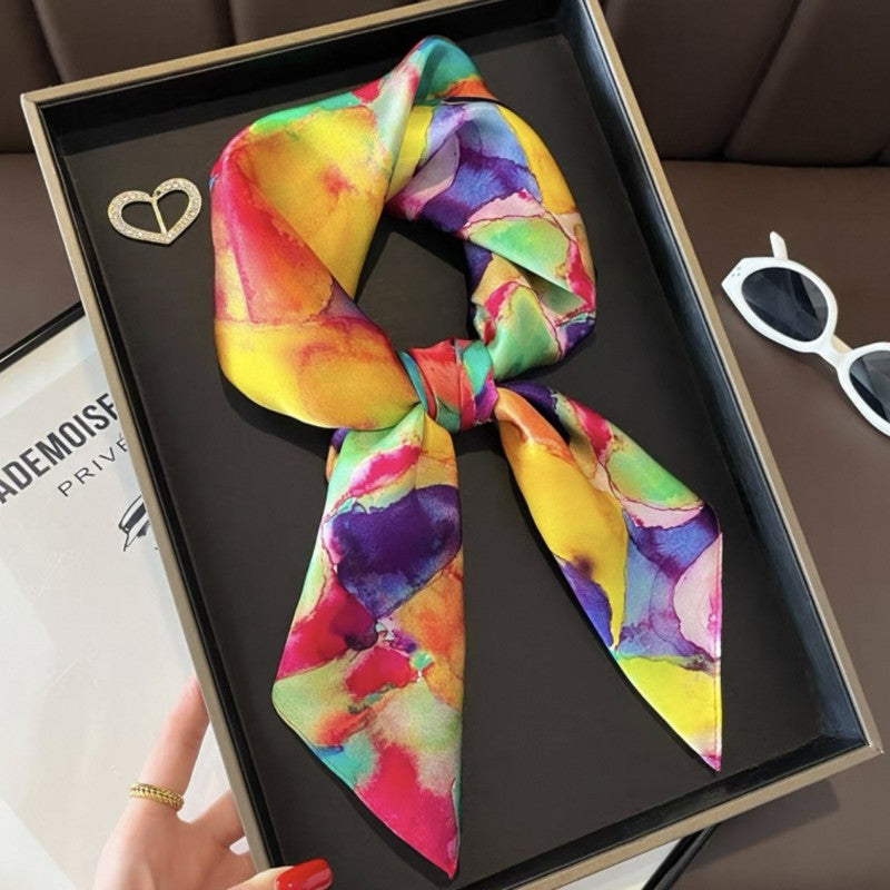 🔸 Universalus modelis – tinka nešioti kaip šaliką, plaukų aksesuarą ar net rankinuko detalę